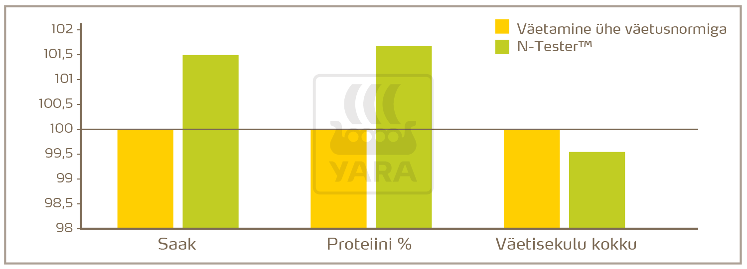 Jaotatud lämmastikväetamisega on võimalik N-väetamist vastavalt taimede tegelikult vajadusele, aasta ning põllu spetsiifiliselt paremini optimeerida. N-Tester BT mõõtmised annavad väärtuslikku infot toitainete olemasolu kohta taimes. Teraviljade puhul aitab see kõrsumise ja pea loomise vahelisel perioodil optimaalset lämmastikväetise kogust arvutada.